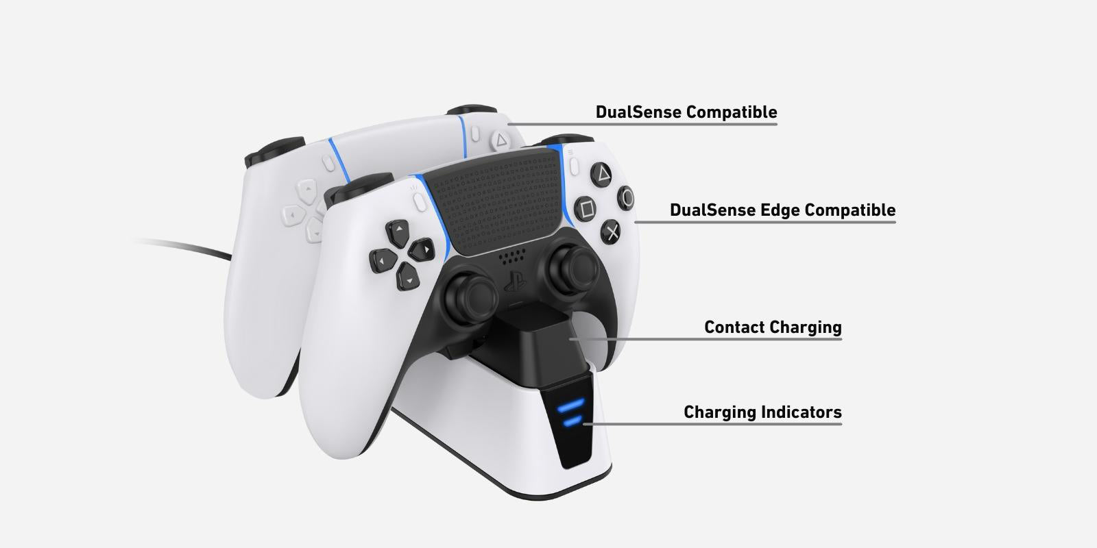 The compact design showcases your controllers and is capable of charging both DualSense & DualSense Edge controllers.