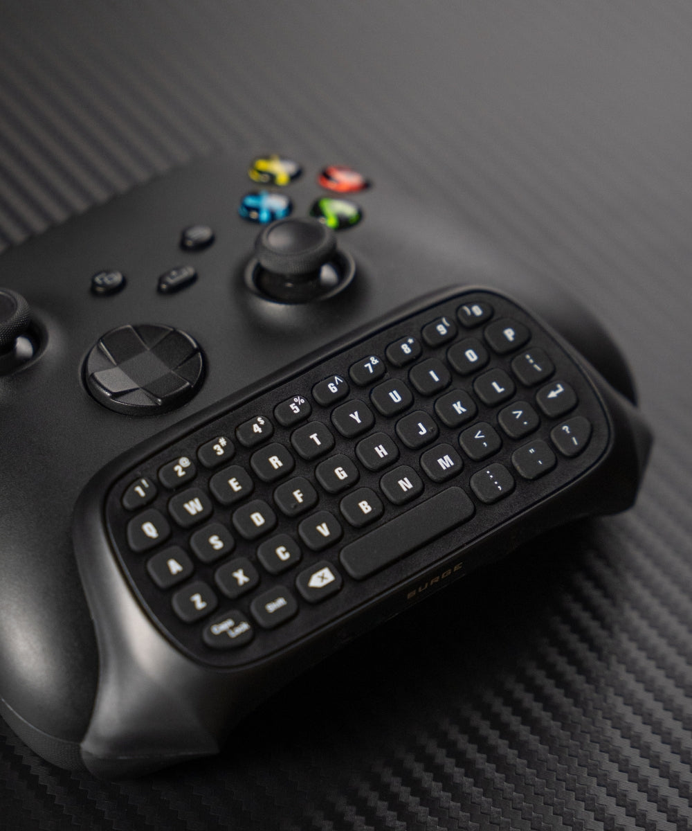 Communicate with friends, search the web, & enter codes in seconds with the Surge QuickType 2.0 for Xbox Series X|S & Xbox One. Our chat pad features an ergonomic design with a full QWERTY keyboard, allowing users to quickly send messages and get back to the game. The pad connects to your Xbox console through a wireless connection, with an included adapter that stores in the chat pad when not in use. A 3.5mm pass-through port allows you to connect your headset to the bottom of the chat pad, allowing you to communicate by voice or text.